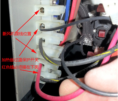 此处加热丝和鼓风机的电源线位置一定要记住接反了会出问题,必要时先拍照再拆线