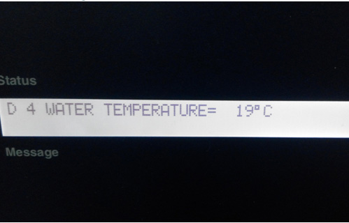 1开启仪器,按“?”键进入诊断模式,然后按上键选择到“D4 WATER TEMPERATURE=XX℃”,查看此时仪器显示的水温为多少度,如果温度与室温相差较大,则表明水盘温度传感器存在故障,应更换水盘温度传感器,即可解决故障。
