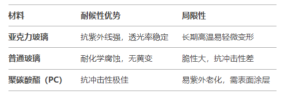 四、亚克力与其他材料的耐候性对比